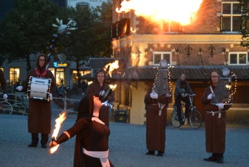 Een aantal keren hebben we onze vuur kunsten muzikaal gecombineerd met o.a Drumband de Marko's uit Burgum & Mallet band De Woudklank uit Noordwolde.